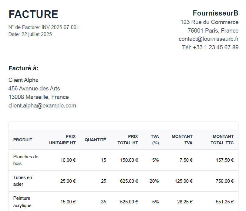 Par exemple, vous importez cette facture :